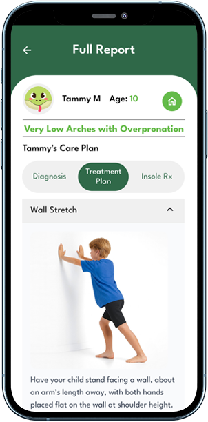 Review your chlid's full report including stretches, exercises and a stage specific insole recommendation (Rx).